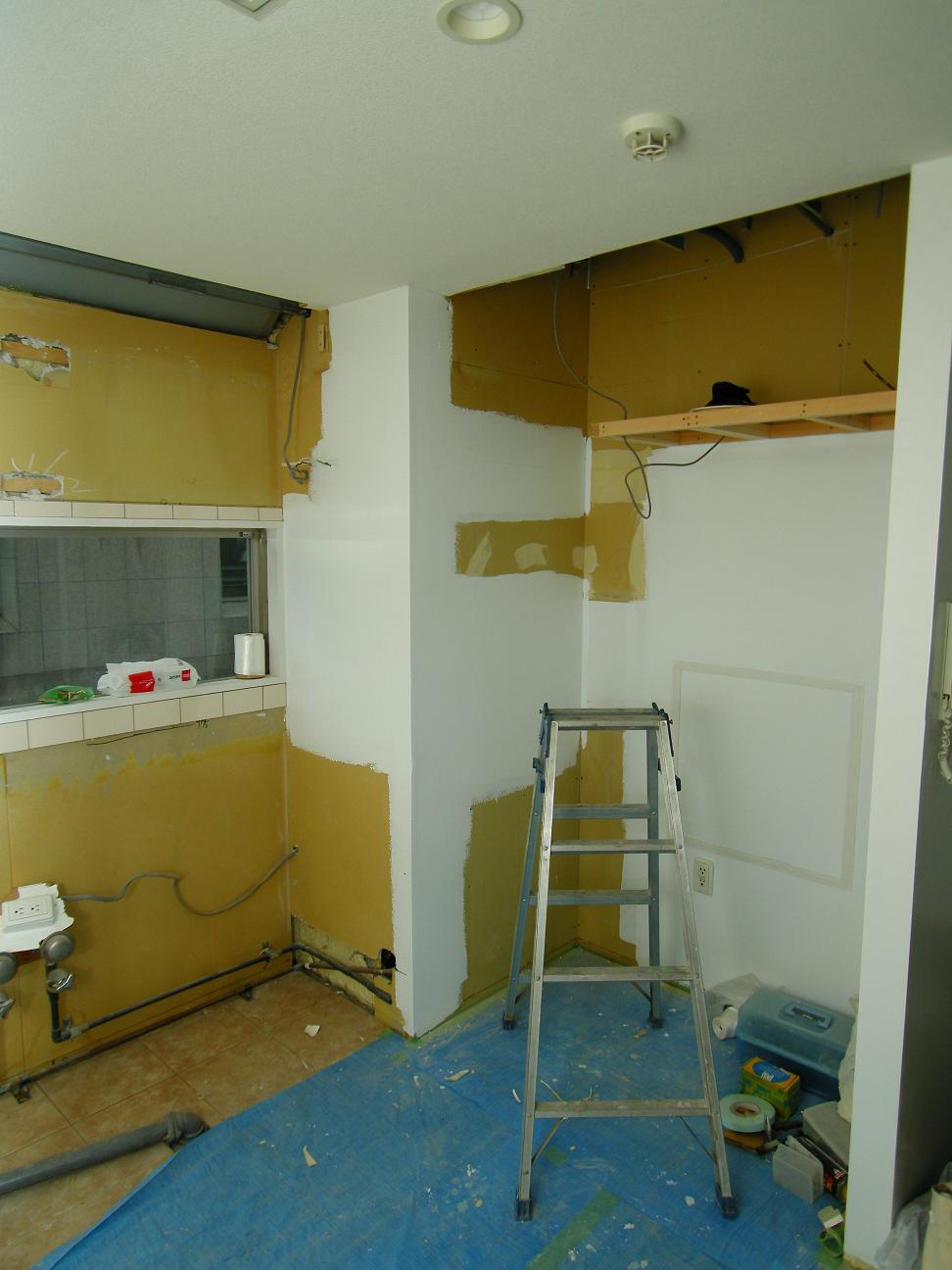 上記状況にバーチ突板にウレタン塗装を施したキッチンを取り付け施工してまいります。