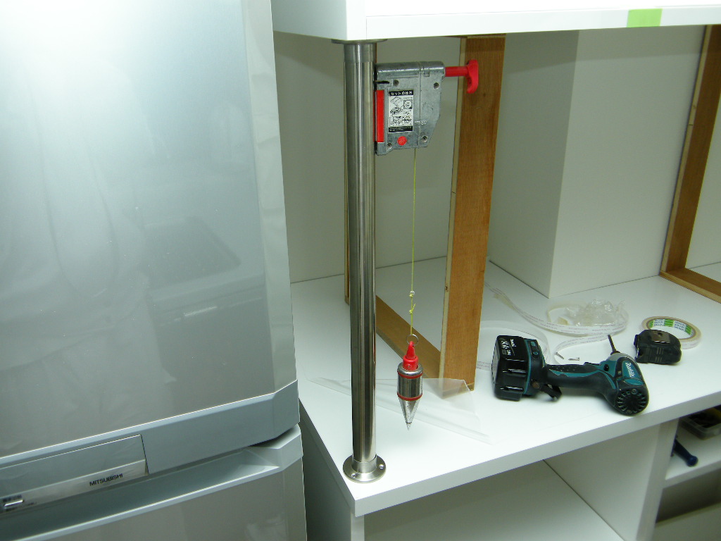 扉を外した吊棚を仮置き。