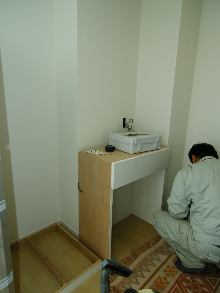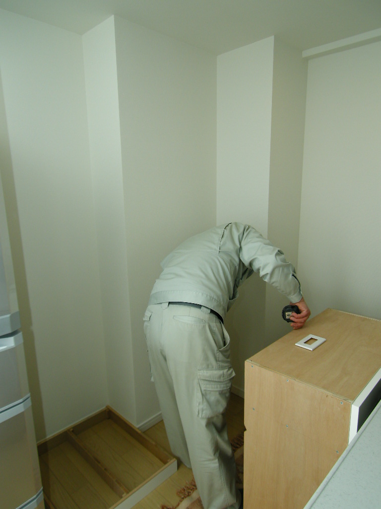 葛飾区 M邸 カップボード(キッチン壁面収納) 施工状況①