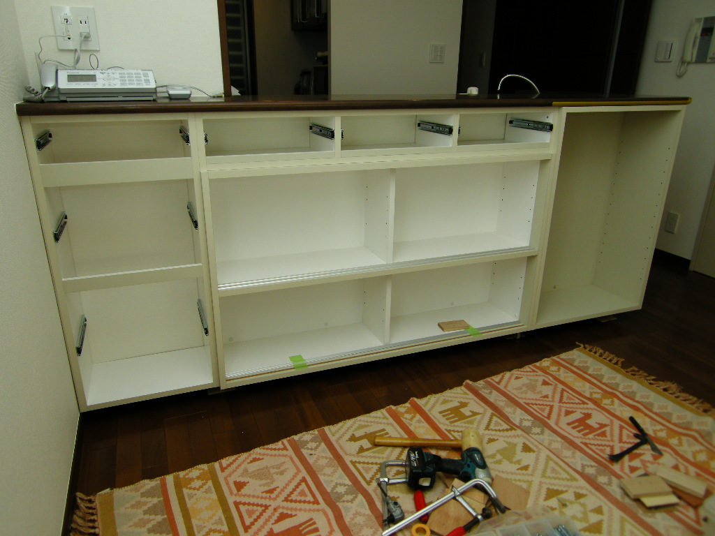 大田区 Y邸 カウンター下壁面収納 施工状況 ③