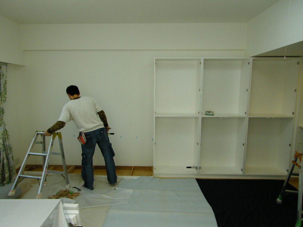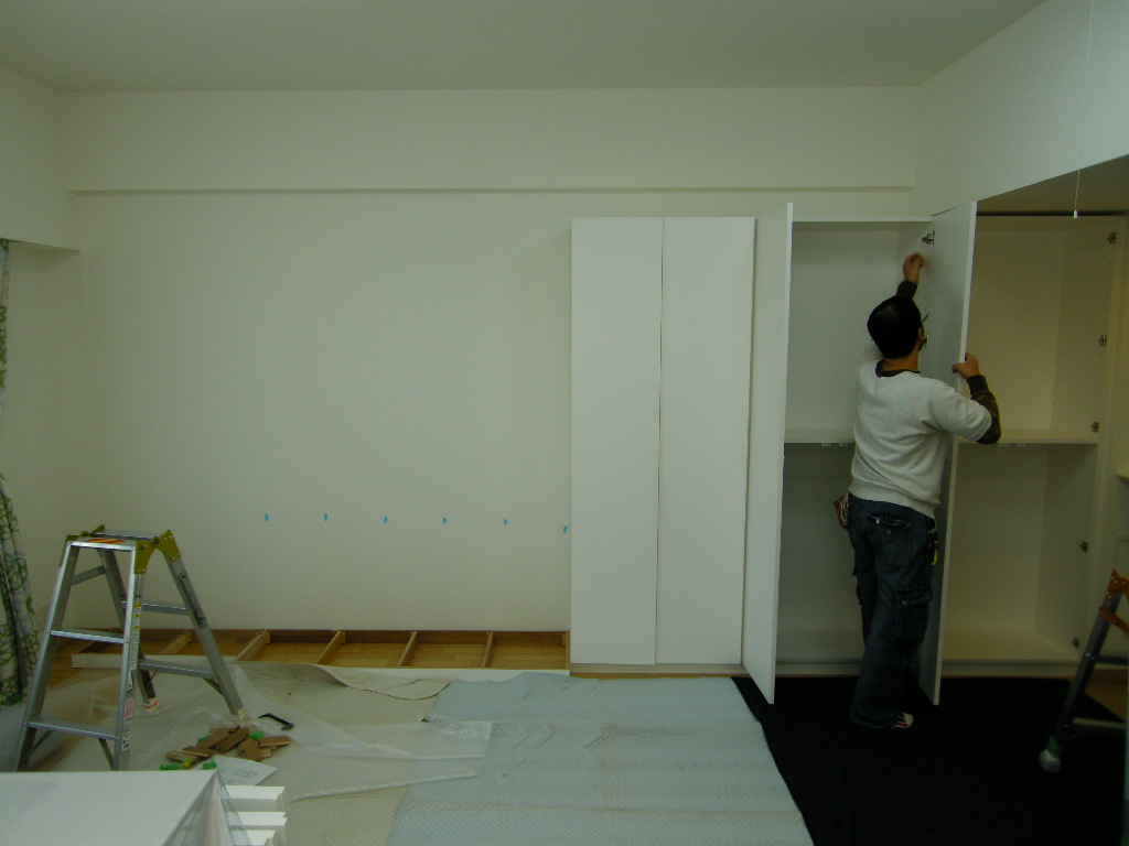 こちらは残すところクリーニング・棚板の設置・扉の吊り込み・調整で完成です。