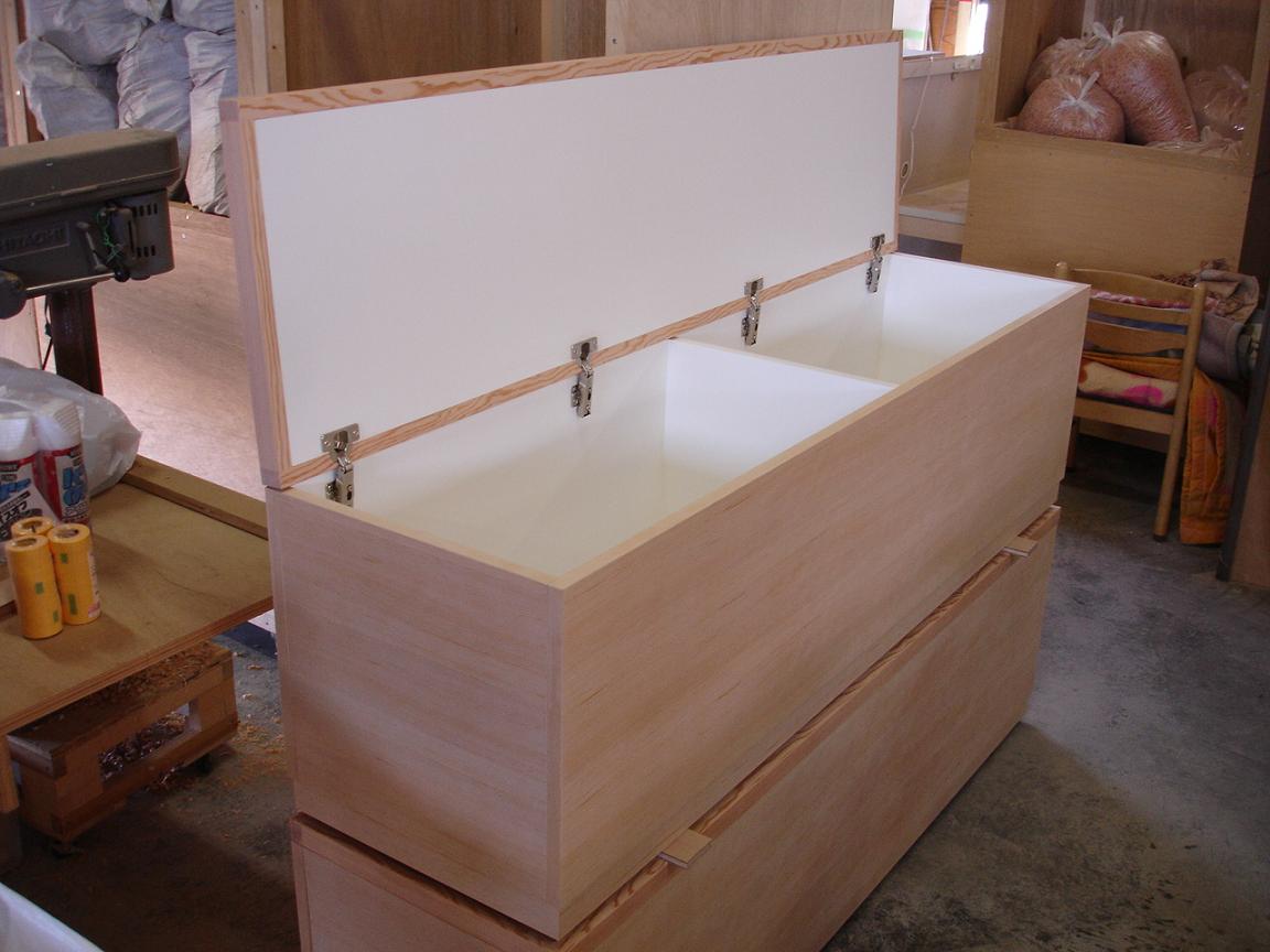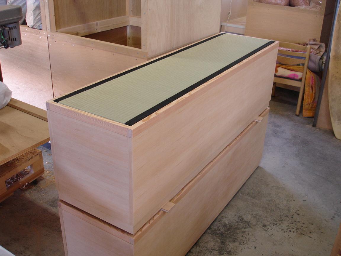 格子収納とベンチ収納(畳)の出荷前の状況をご報告いたします。