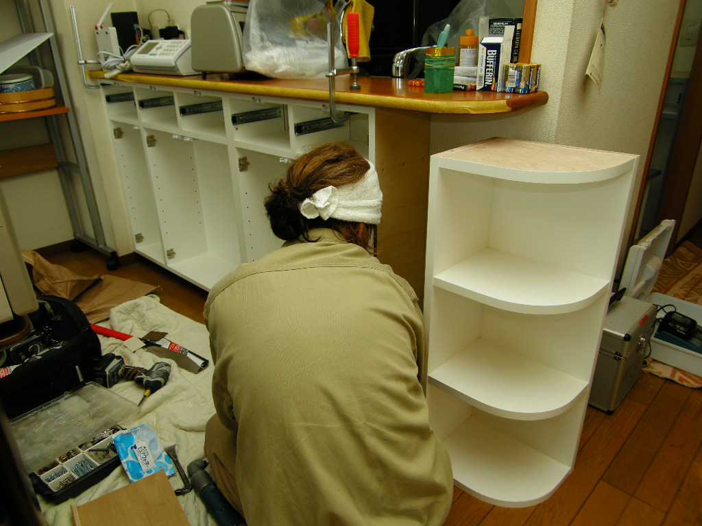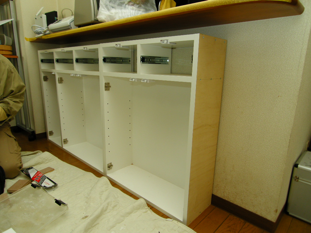 川口市 K邸 カウンターボード(既存カウンター下壁面収納) 施工状況 ②