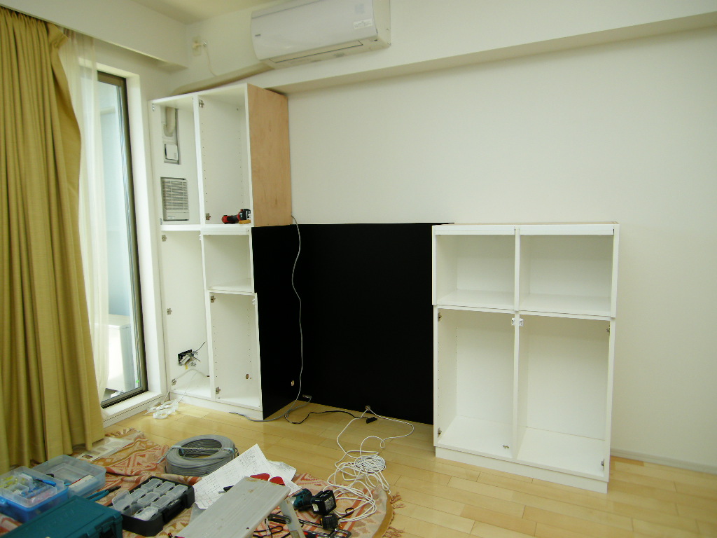 だんだんリビングボード(壁面収納)らしくなってまいりました。