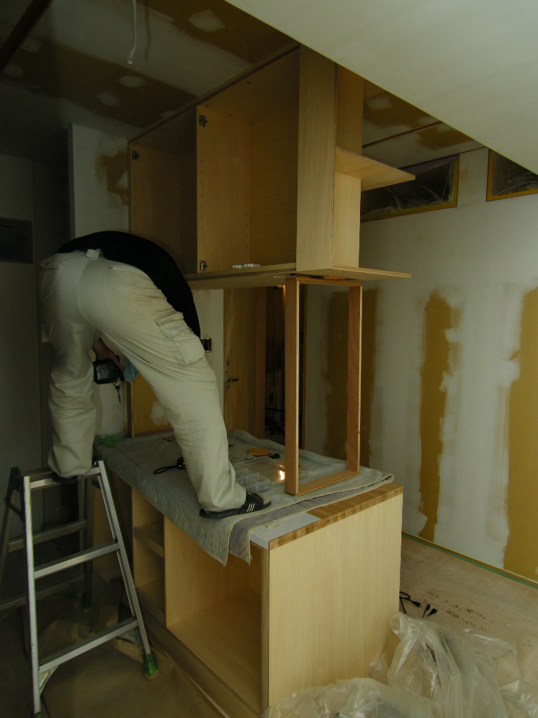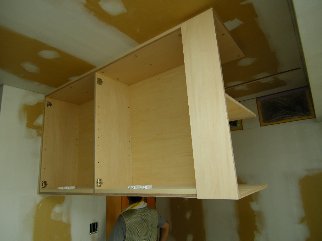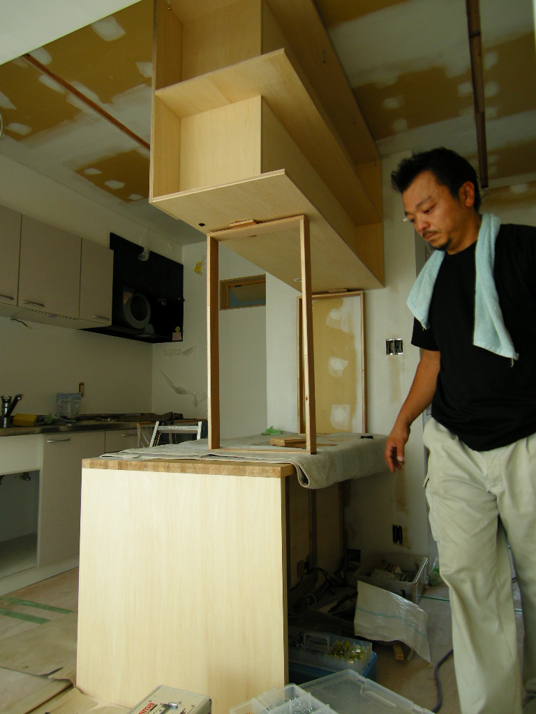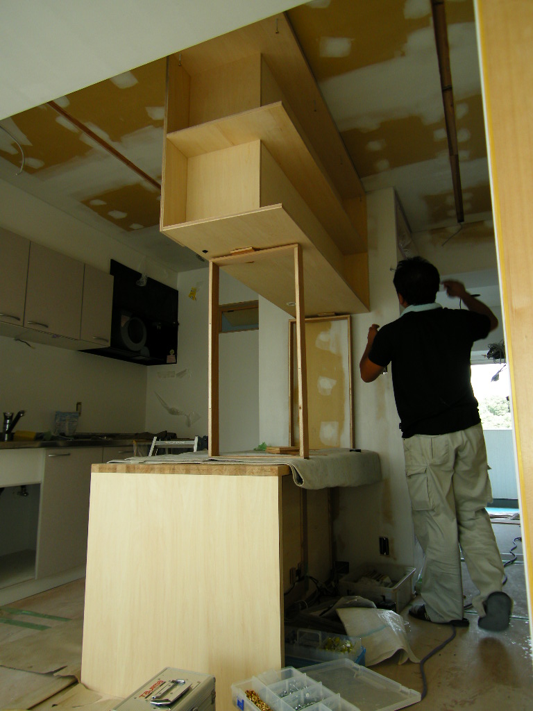 予め作ってきた施工サポート用の下駄に吊物を仮置き。