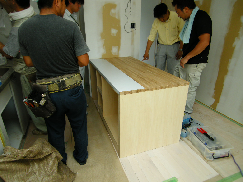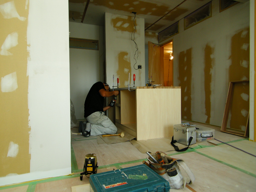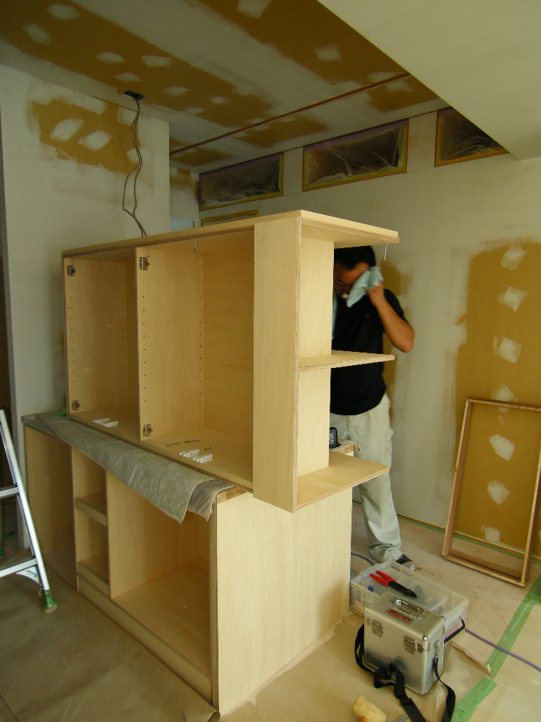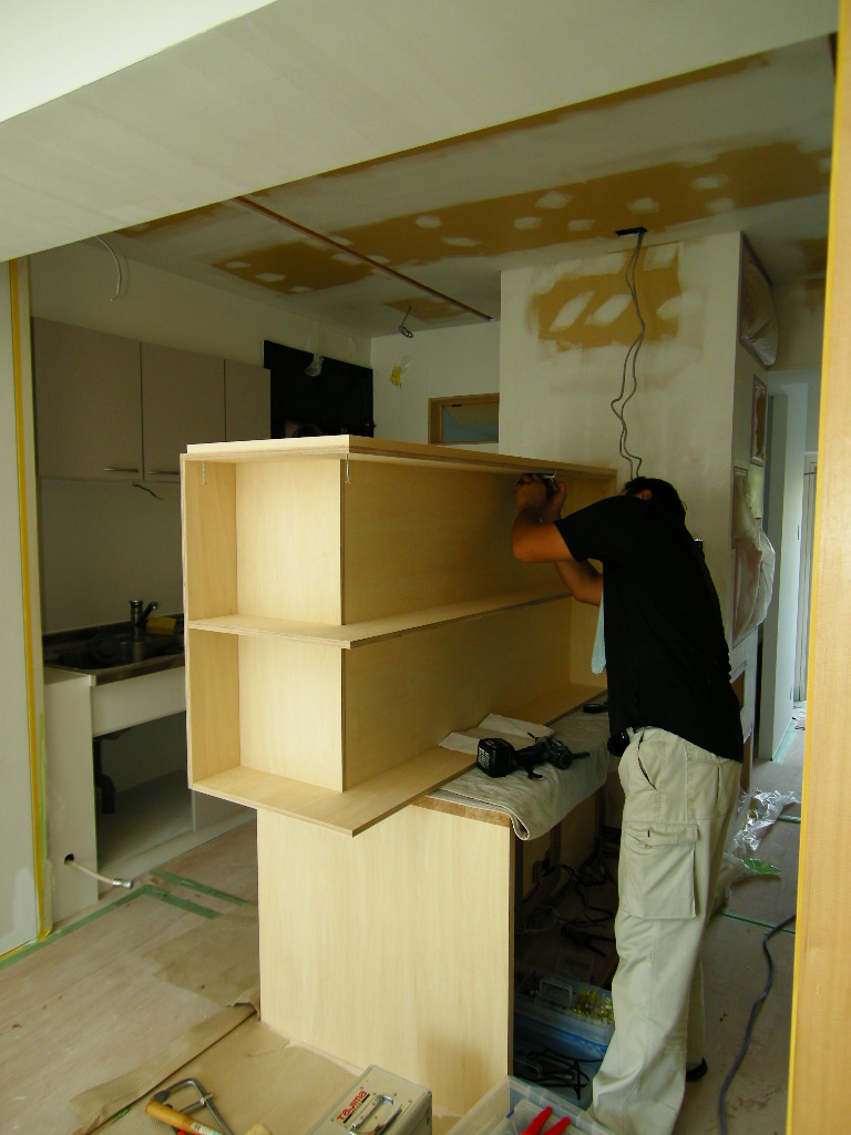 吊物の搬入・ビスの仮撃ちをしておきます。