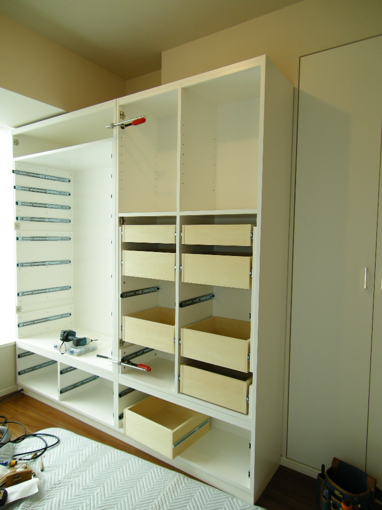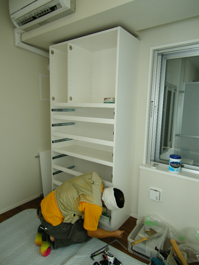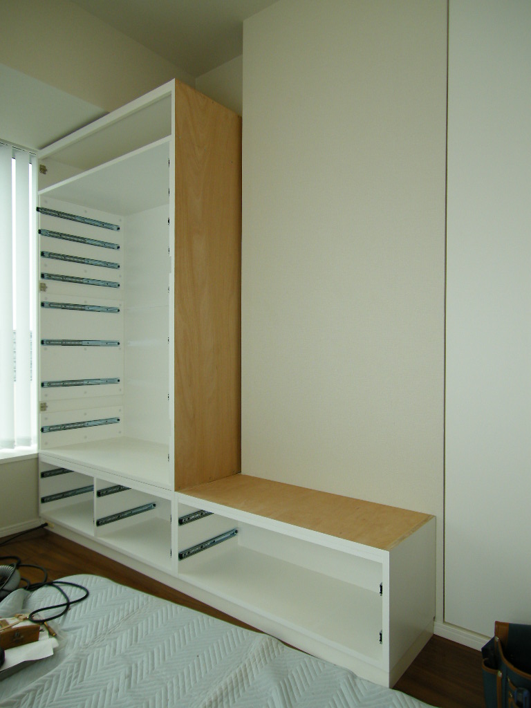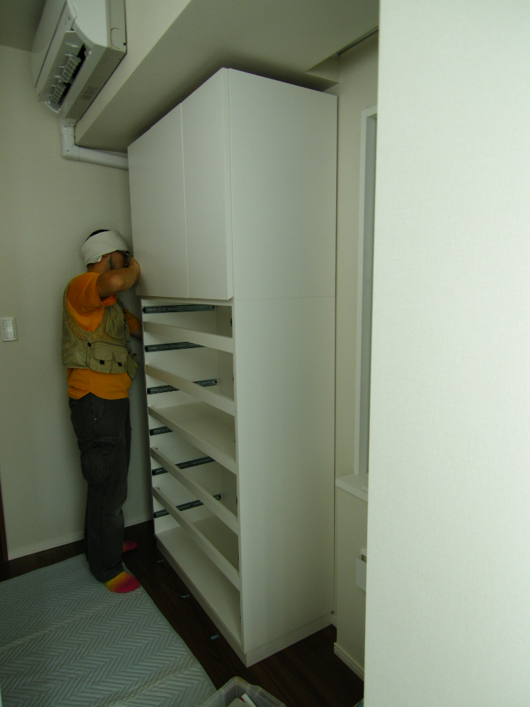 ワードローブ左側本体の仮置き状況。