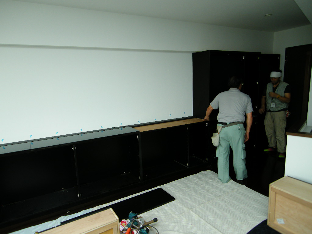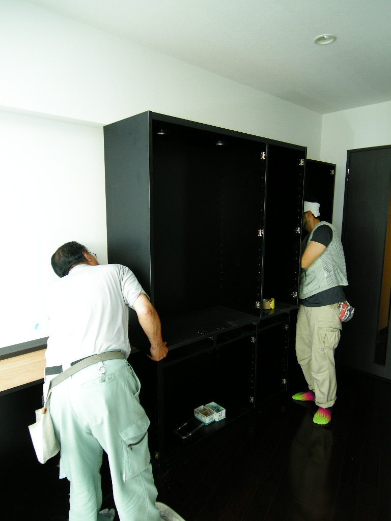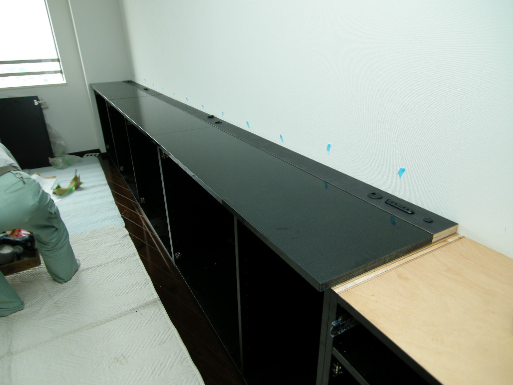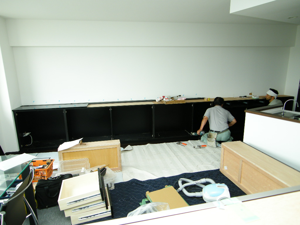 カップボード・壁面収納部分の仮置き。