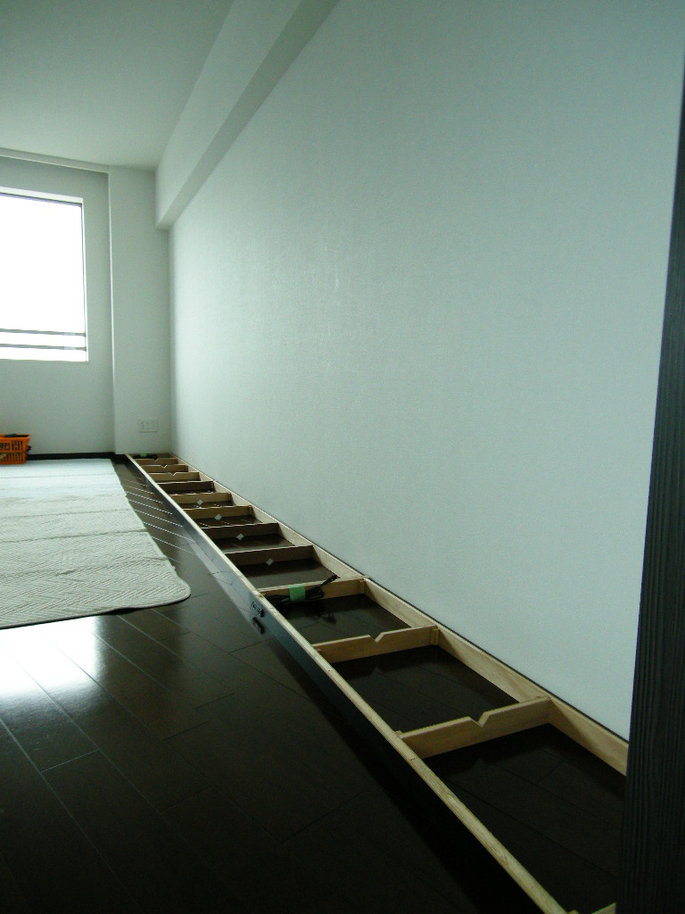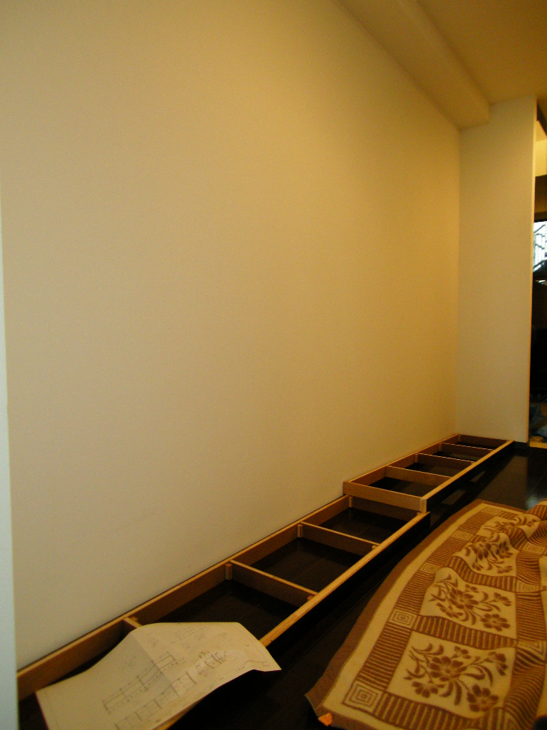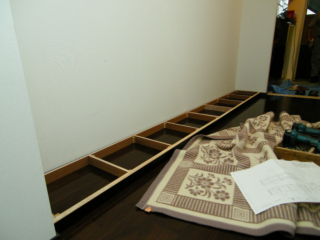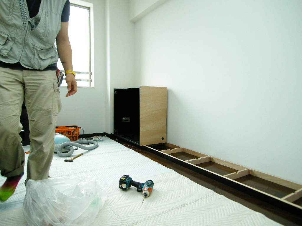 足立区 Y邸 リビングボード(壁面収納) 施工状況 ②