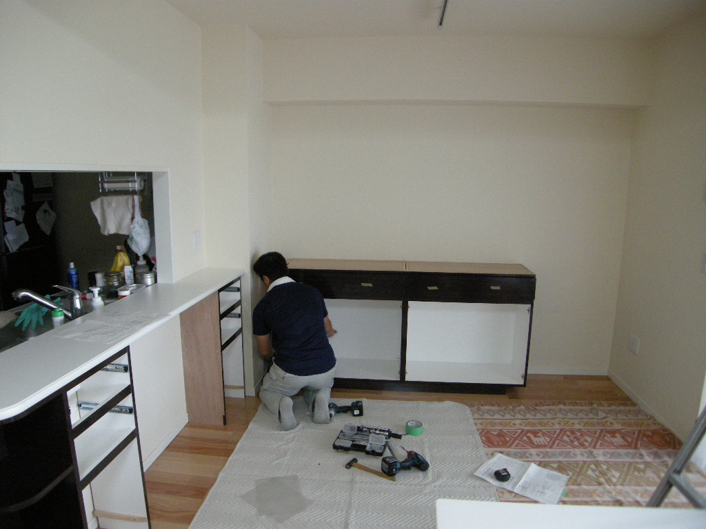 (ダイニング壁面とカウンター下へ仮置き)