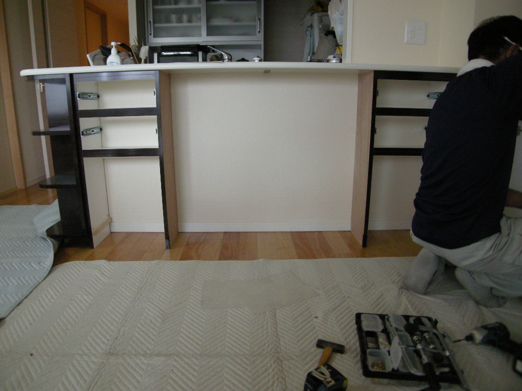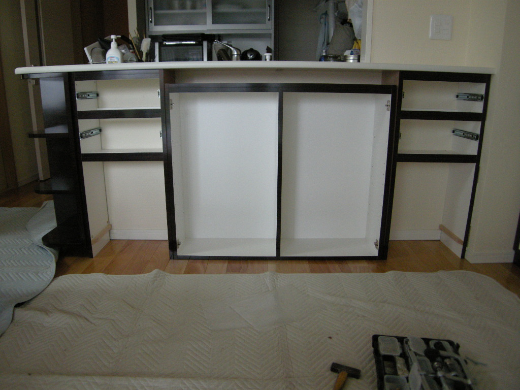 カウンター下も同時に仮置き、