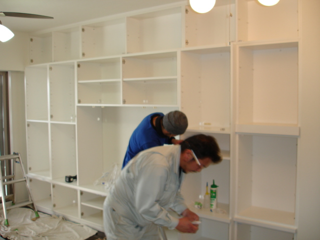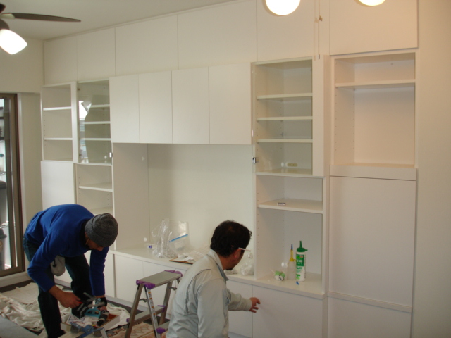 クリーニングと平行して棚板を収めて行きます。
