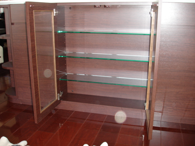 W寸がある為強度を考慮し、棚板には8mm硝子を使用致しました。