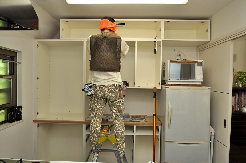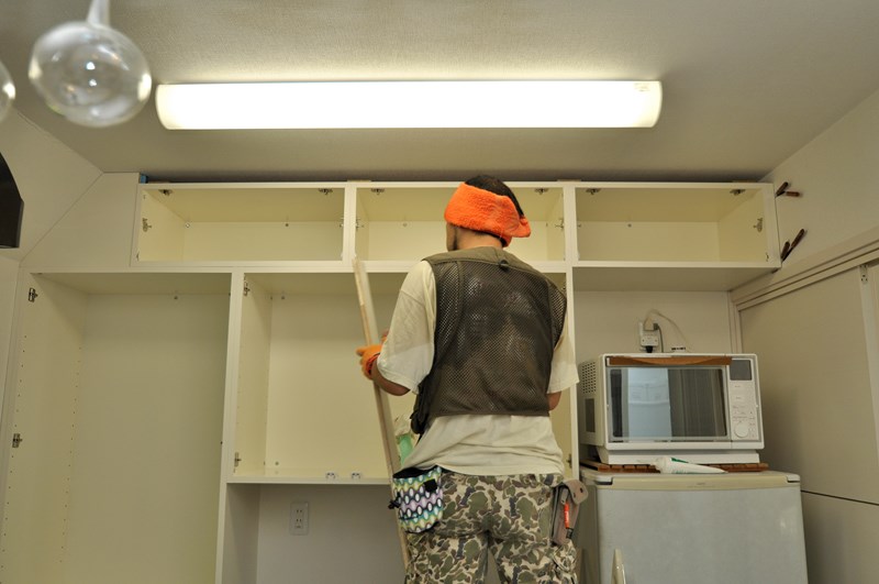上部収納(天袋)施工からスタートですね(´・ω・`)