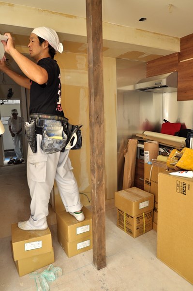 木工事後の施工が困難な箇所へ、先貼りしていただきました。