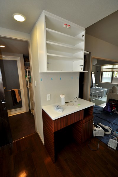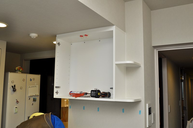 造作カウンター収納の段取りをしている間に、