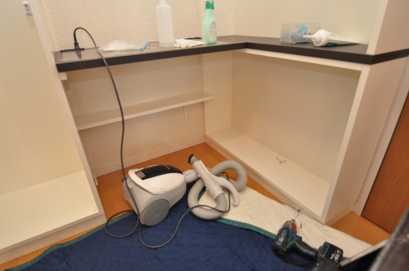 クリーニングと棚板を収めたら完成かな?