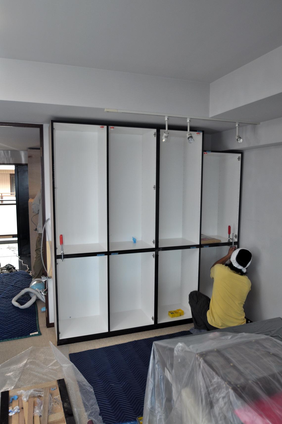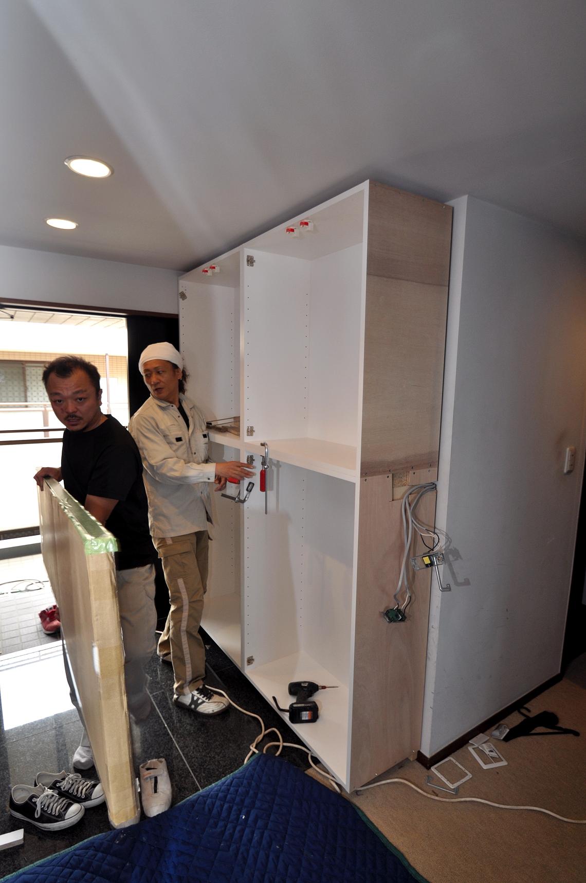 今日も暑くなりそうですね~東京は27度の予報でした(*^-^*)現場管理は着替え持参の季節に入りましたw今年の夏は楽しめるかな?(●´艸`)さて、一日跳んでしまいましたが、前回からの続きですw下台の連結作業と壁面への固定。今回のキッチン収納は抽斗がメインですwスラ...
