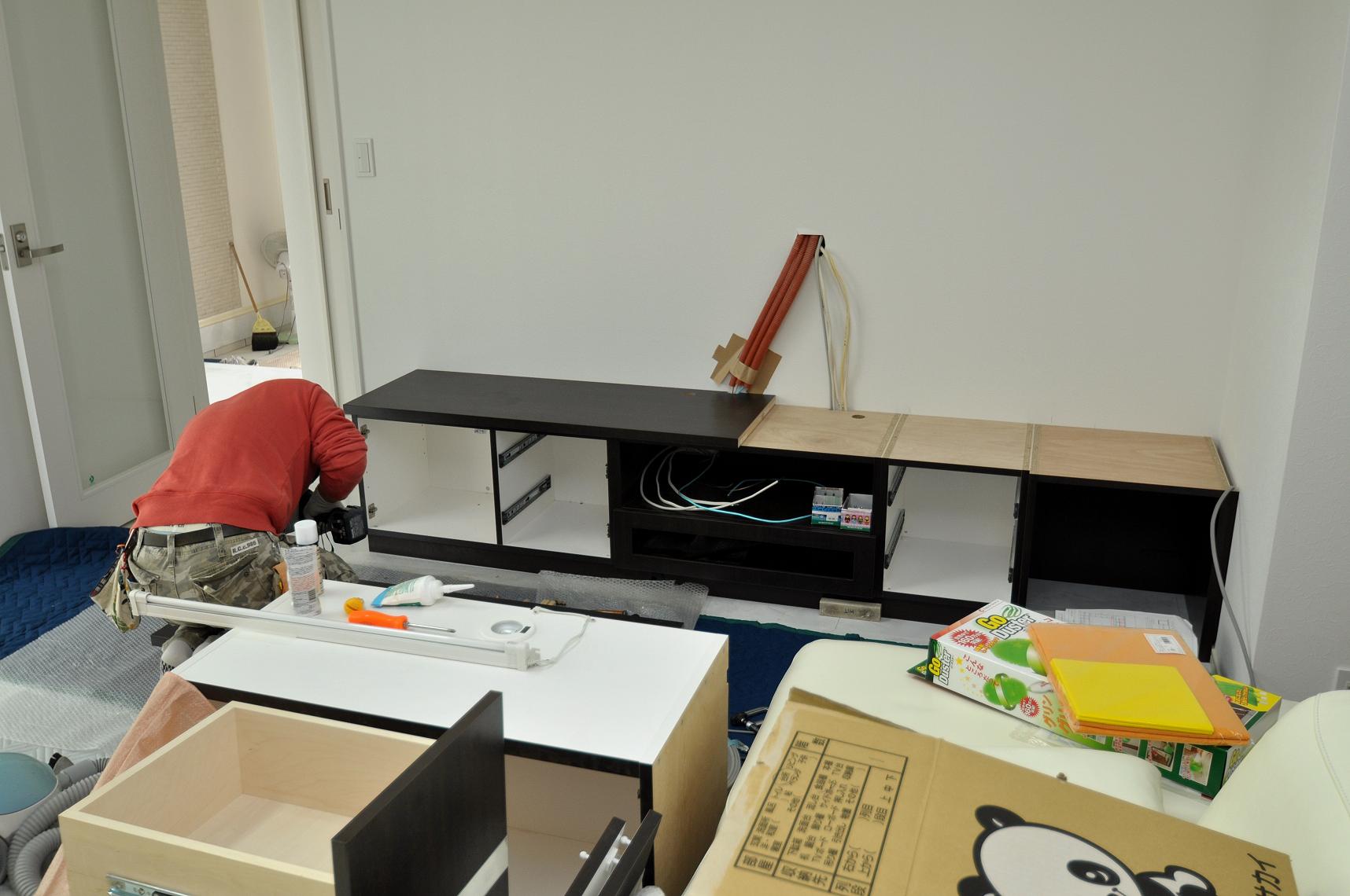 お盆休みもそろそろ終わりでしょうか?毎日暑いですね~(_ _|||)常時微熱状態と申しますか、体の不調を感じる今日です。。。さて、少々跳んでしまいましたが前回からの続きです。下台(TVボード)部分の仮置きと配線関係の仕込み。各パートに間配って箱の固定作業へ続きます。配...