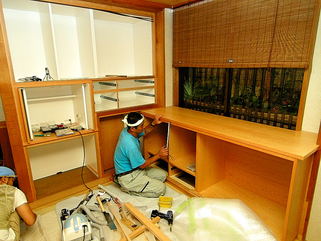 秋の深まりを感じるこの頃です。ゆっくりインテリアの構想を膨らますのには最高の季節ですね(笑)前回からの続きをUPしてまいります。中段の連結を終えたら水平レベルの再確認。上段の搬入・仮置きへ進みます。上段左右の連結作業。全体の連結・壁面への固定へ続きます。ここ...