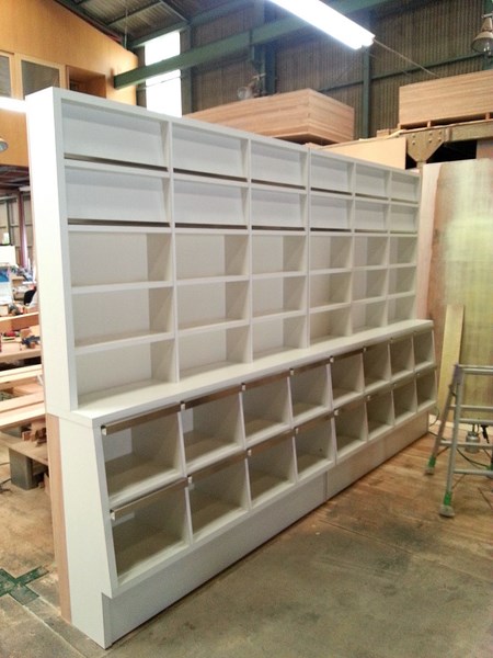 製作状況のレポートをさせていただきます。 まずは仮組み状態の全体画像からご覧下さい。携帯カメラで撮影のため、画像のノイズはご容赦下さいませ。続けてフリッパー扉部分の詳細画像。内部の状態金物などは実装のお品合せで対応させていただきました。連結部分の箱目地...