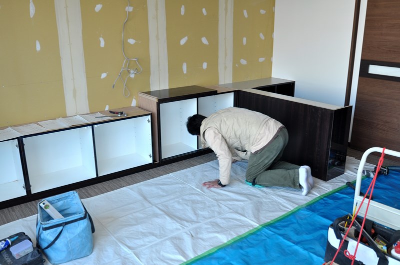 今週も終わっていきますね~東京(事務所付近)は台風の被害もほとんど無かったようです。よかったよかったw さて、先日からの続きをUPしてまいります(´・∀・`) 配線を逃がしつつ、台輪の固定作業。下台の仮置き作業へ続きますw ベース構成の施工。壁面の見掛...