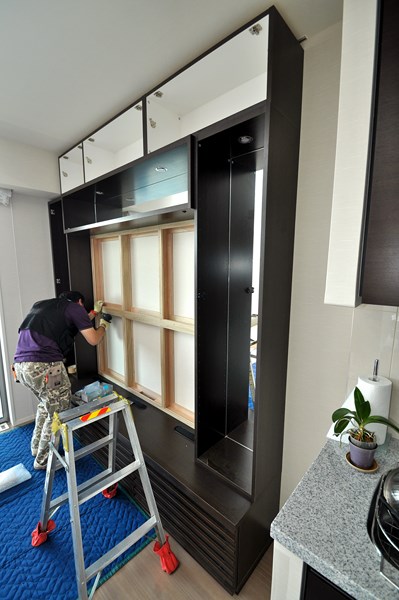 寒い。。。先日までとのギャップに挙動不審です。雪、、、降るんですかね?今日は早上りしちゃいますか(´・ω・`)さて、前回からの更新を始めましょうw 現状画像右側のトールボックスの仮置きへ続きます。 構成の連結作業へ。大分リビングボードっぽくなってきま...