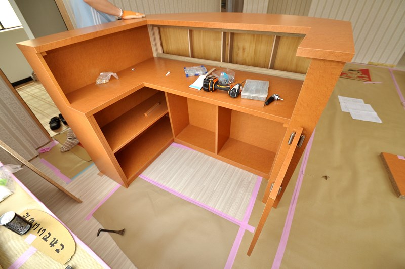 三連休明けの火曜日w1月もあと3Wで終わりですね~「一月=行く」昔おじいちゃんがよく申しておりました(´・ω・`)さて、4回に渡ってレポートさせていただいた受付カウンターも、本日で最終回となりますwカウンタートップの仮置き作業からご覧下さい。天板上に道具が散乱し...