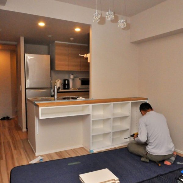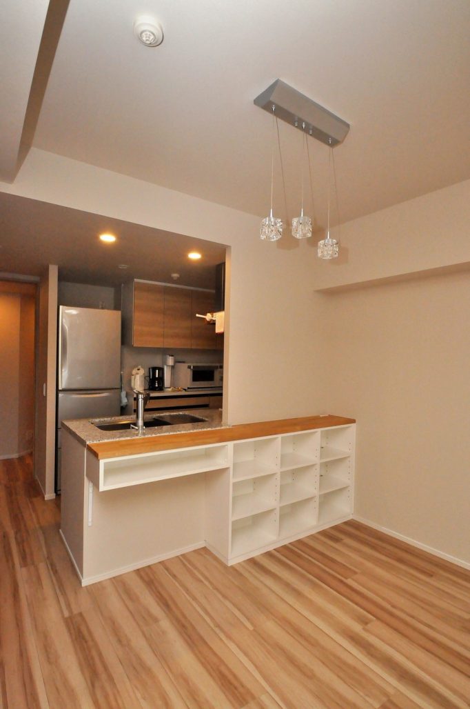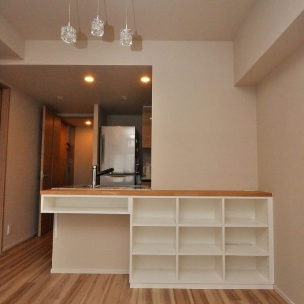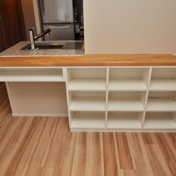 ・分譲マンション内における、ダイニングボード製作/造作カウンター下収納 造作工事 オーダー家具 施工事例
