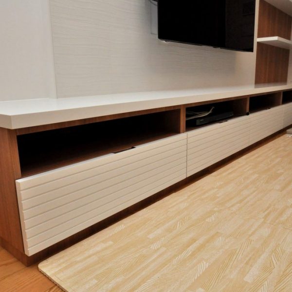 分譲マンション内・リビングルームにおける造作家具工事/造作TVボード製作 オーダー家具 製作事例