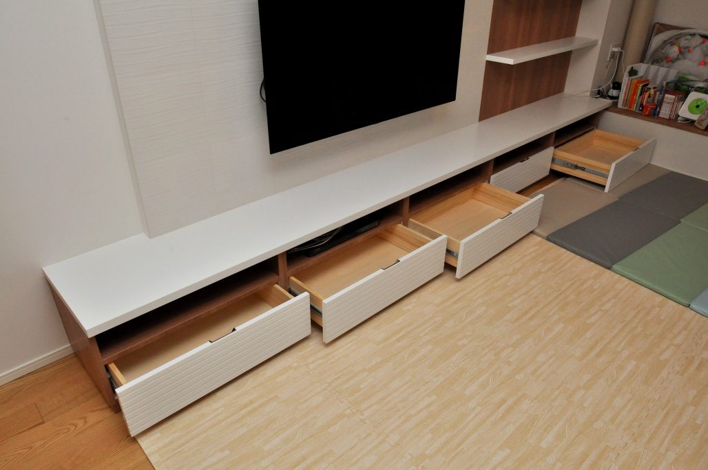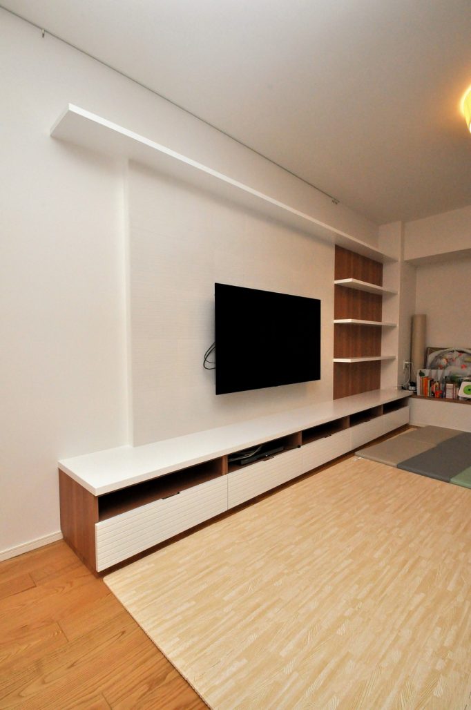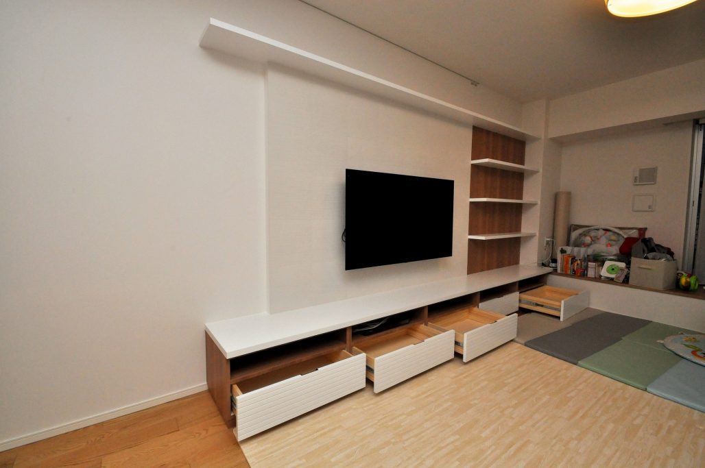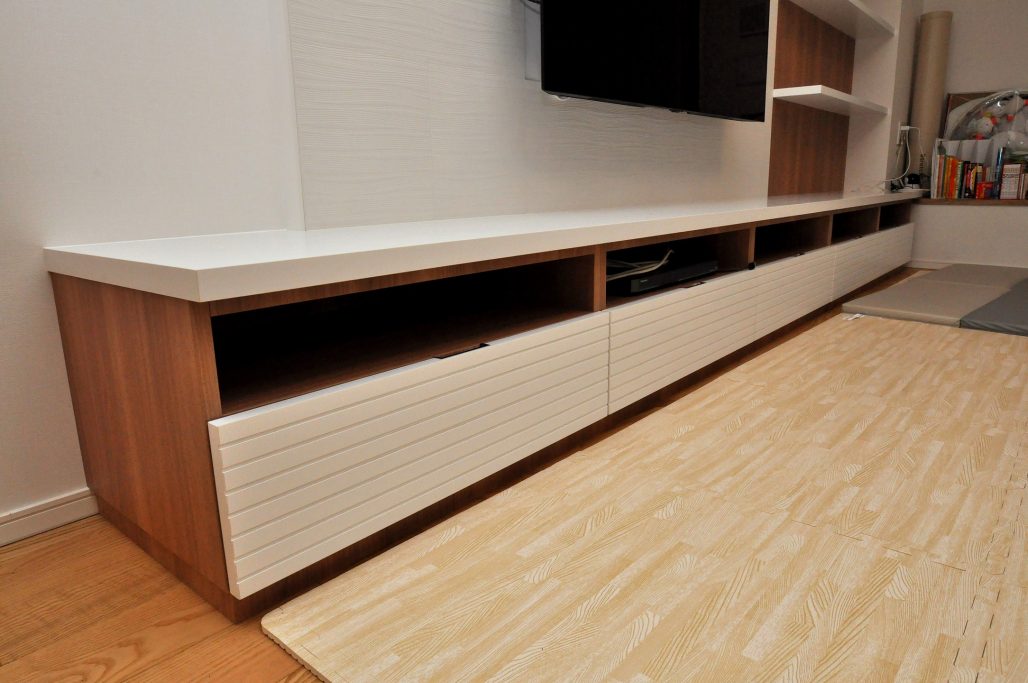 分譲マンション内・リビングルームにおける造作家具工事/造作TVボード製作 オーダー家具 製作事例