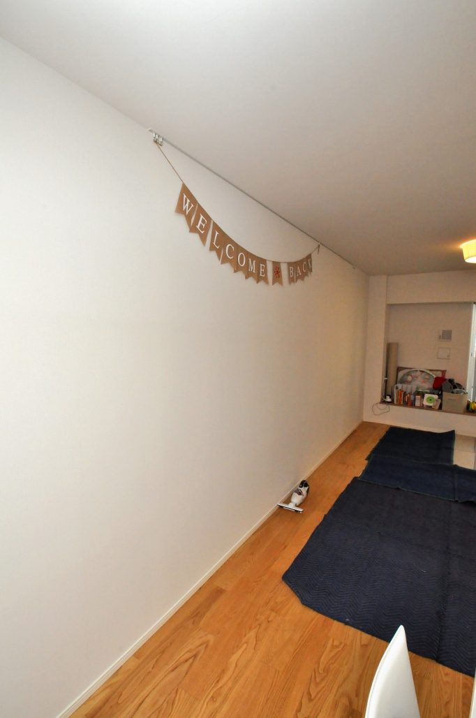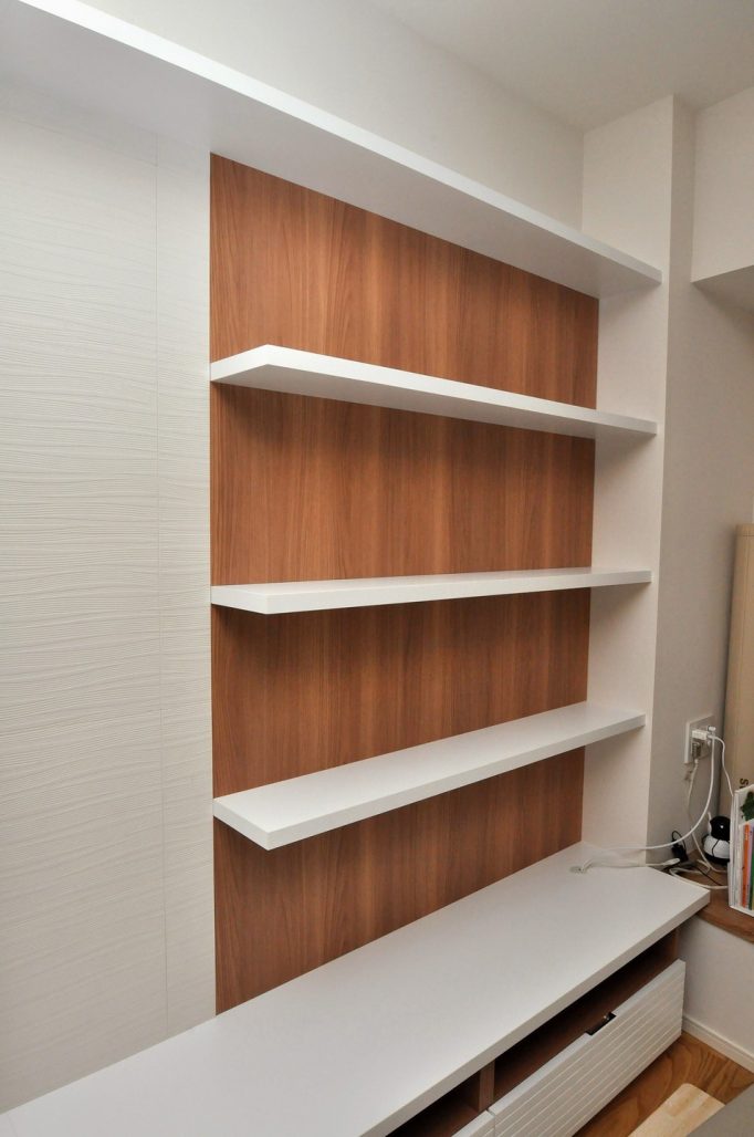実装のマルチメディアコンセントが施工位置から離れていたことから、基本的には有線引き込み式の壁面収納となります。