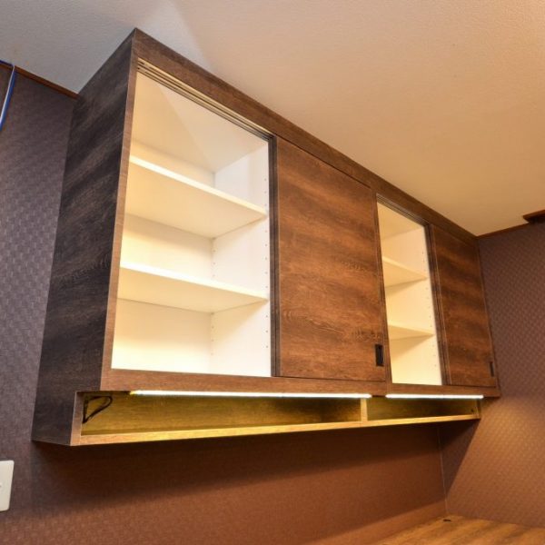 上部の壁面収納はデュアルクローザーを有した引戸式。