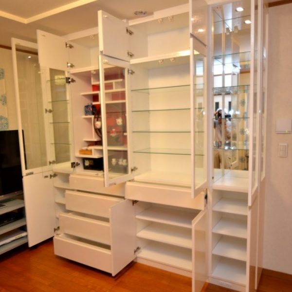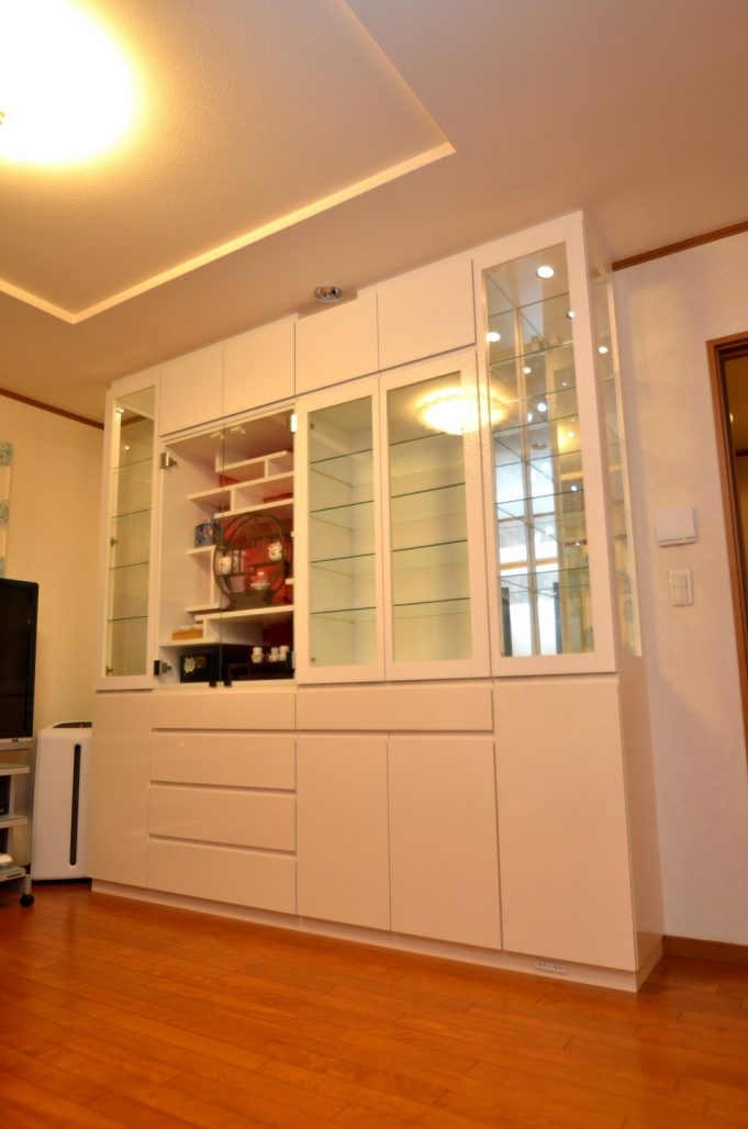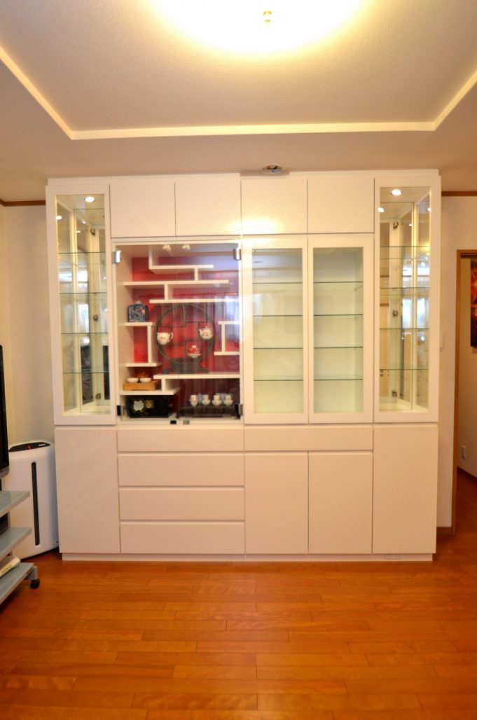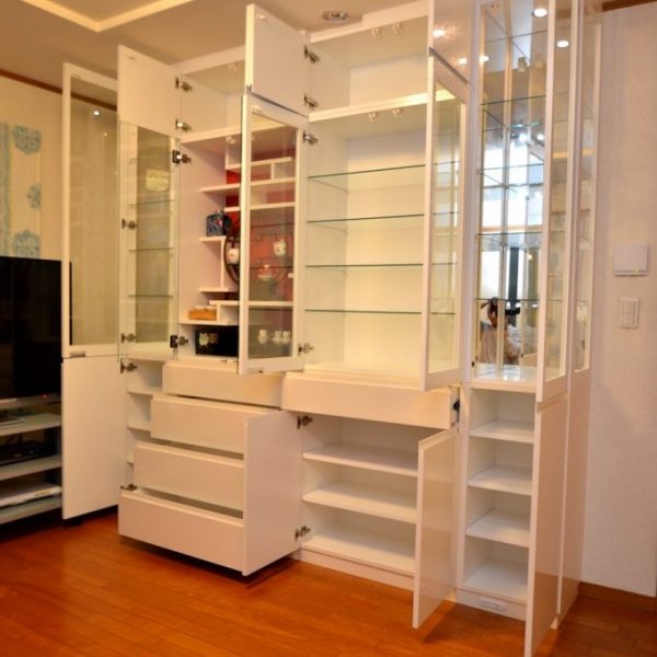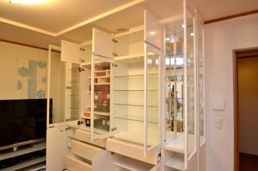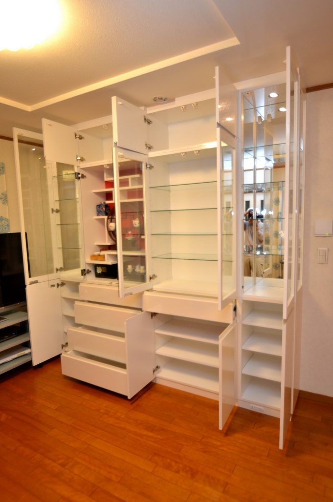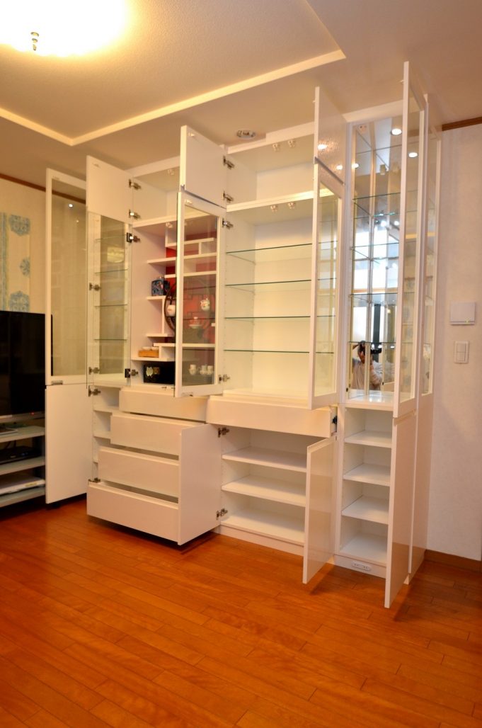 ご注文内容は飾り棚をメインとしたリビングボード。