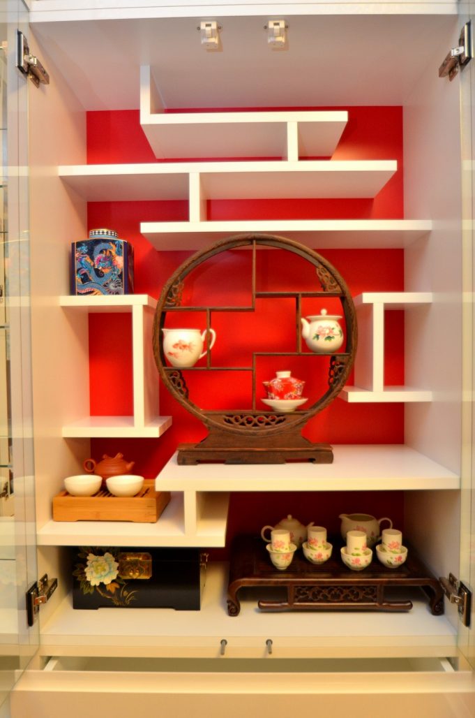 ・茶器などを飾るオリエンタルテイストのスペース。