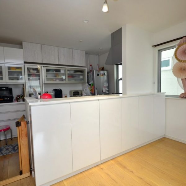 分譲住宅内 LDKにおける実装カウンター下収納製作事例/家具工事 オーダー家具 製作記録