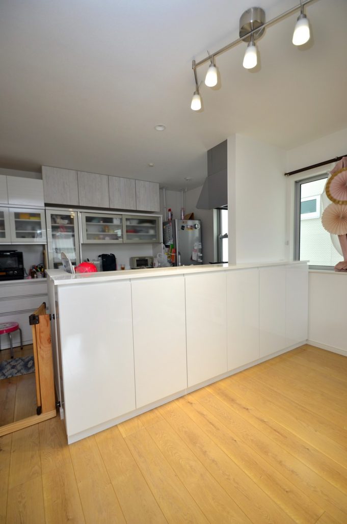 分譲住宅内 LDKにおける実装カウンター下収納製作事例/家具工事 オーダー家具 製作記録