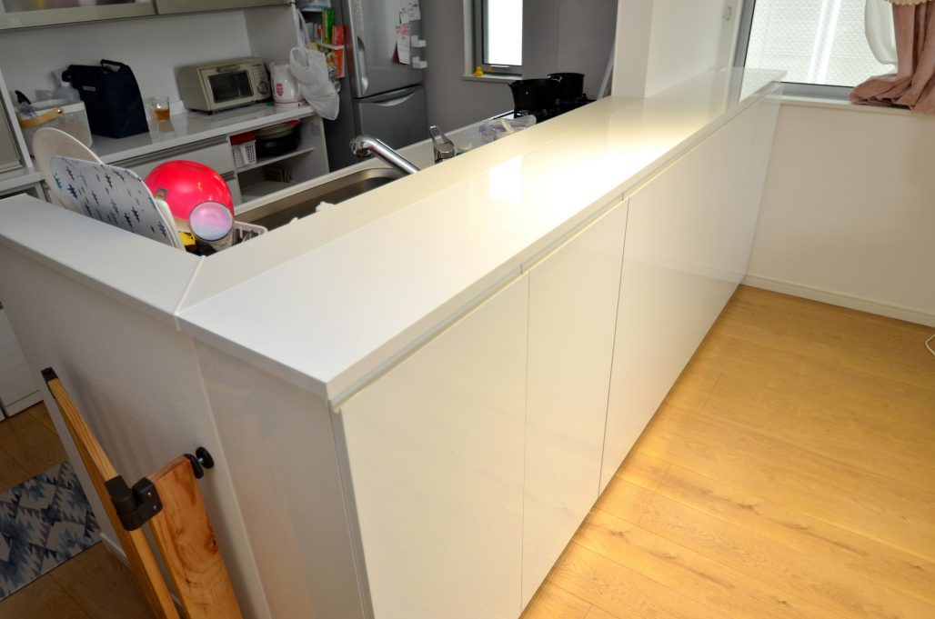 鎌倉市にお住まいのA様より、実装ダイニングカウンター下の造作家具工事をオーダー頂きました。