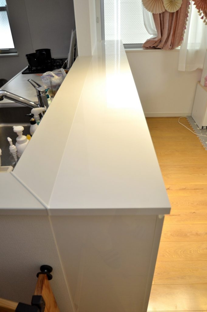 新設カウンターは実装ライニング形状に沿ってジョイントを致しております。
