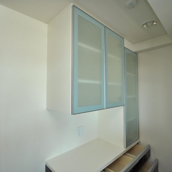 天板から上部は圧迫感を考慮して白色に注し色でシルバー(アルマイト)を。