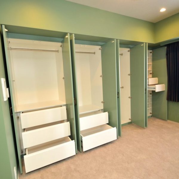 分譲マンション内 洋室・マスターベッドルーム内における造作クローゼット製作/家具工事 オーダー家具 製作事例