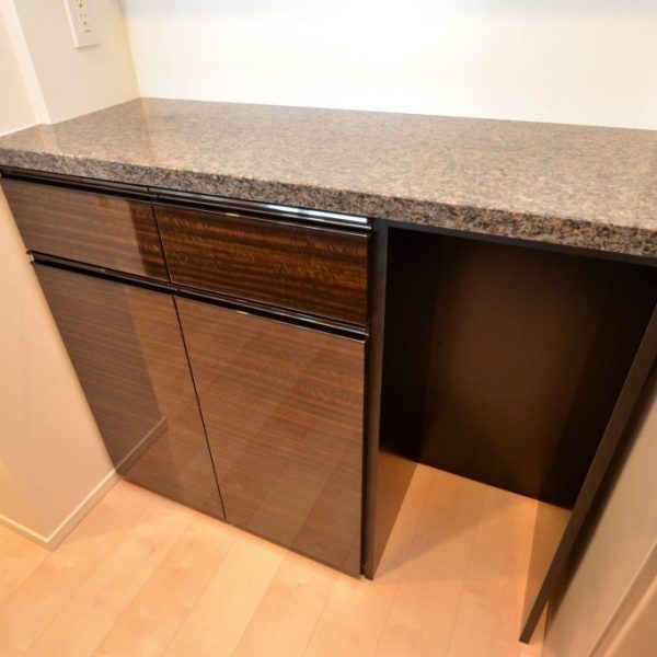 カウンターキャビネット部分ははやりのハイカウンターサイズで製作。