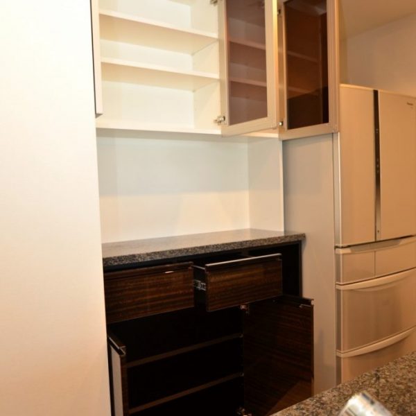 分譲マンション内キッチンにおける造作キッチン壁面収納/造作カップボード製作 オーダー家具 製作事例