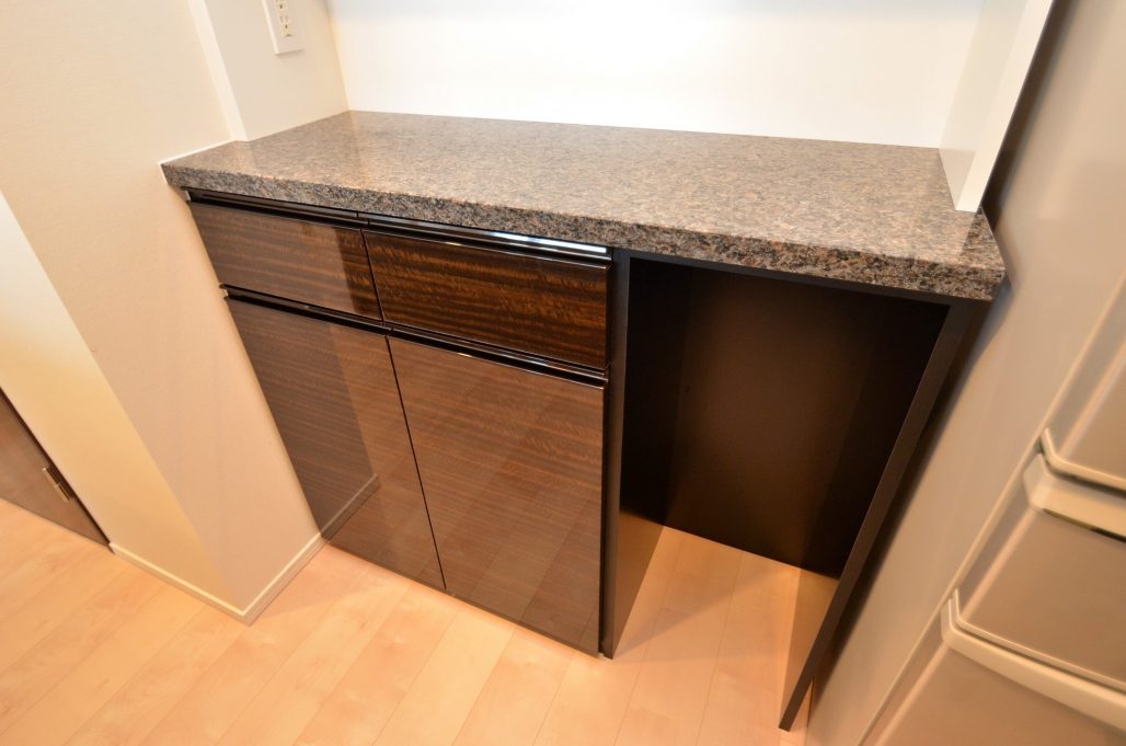 カウンターキャビネット部分ははやりのハイカウンターサイズで製作。