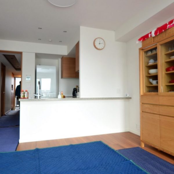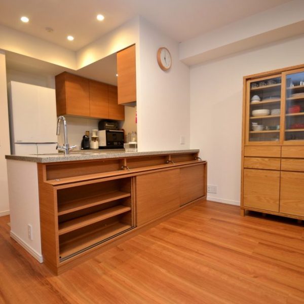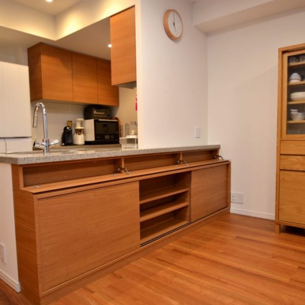 分譲マンション内 LDKにおける実装カウンター下収納製作事例/家具工事 オーダー家具 製作記録