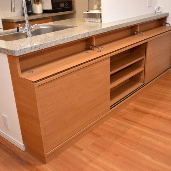 メイン収納部分を3枚の引き戸式としてオーダーをいただきました。