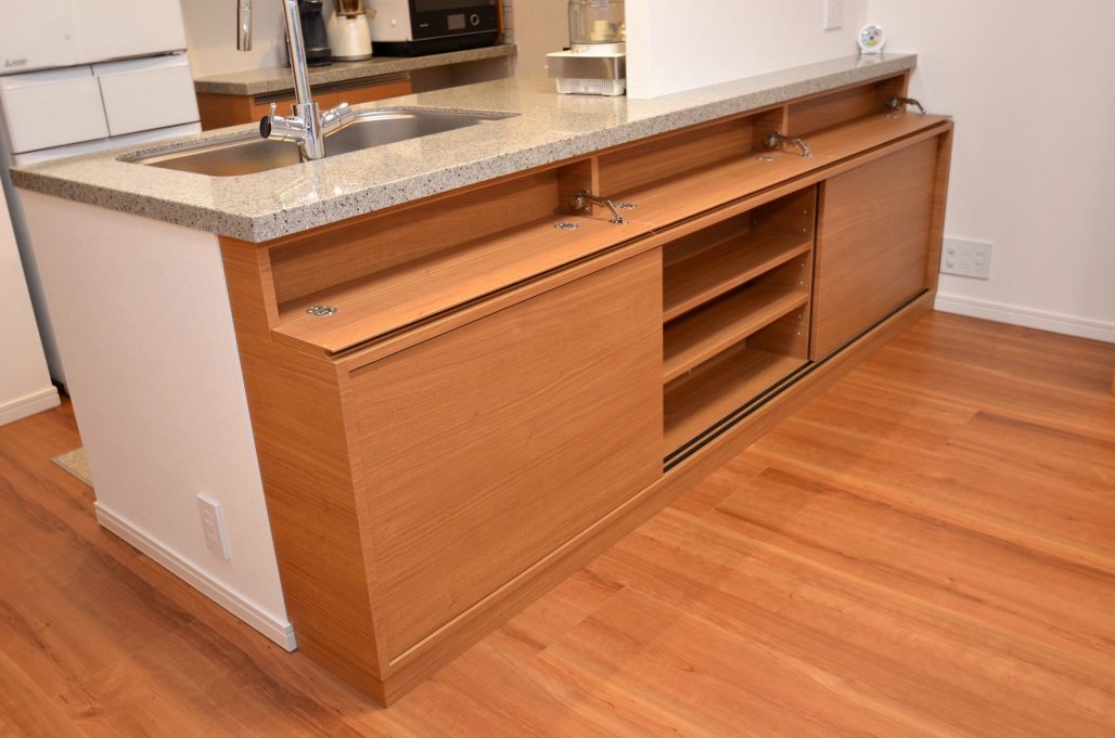 メイン収納部分を3枚の引き戸式としてオーダーをいただきました。
