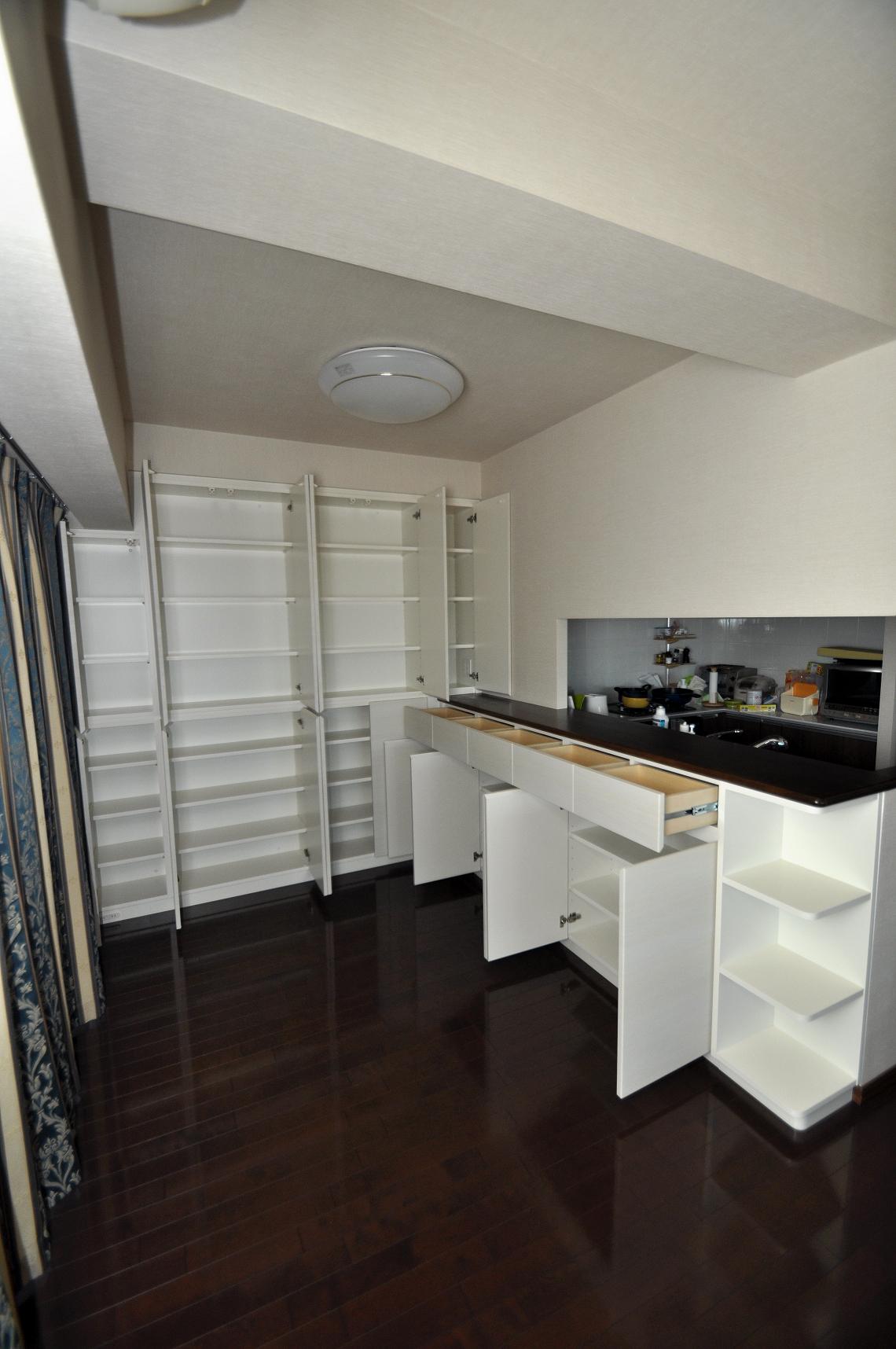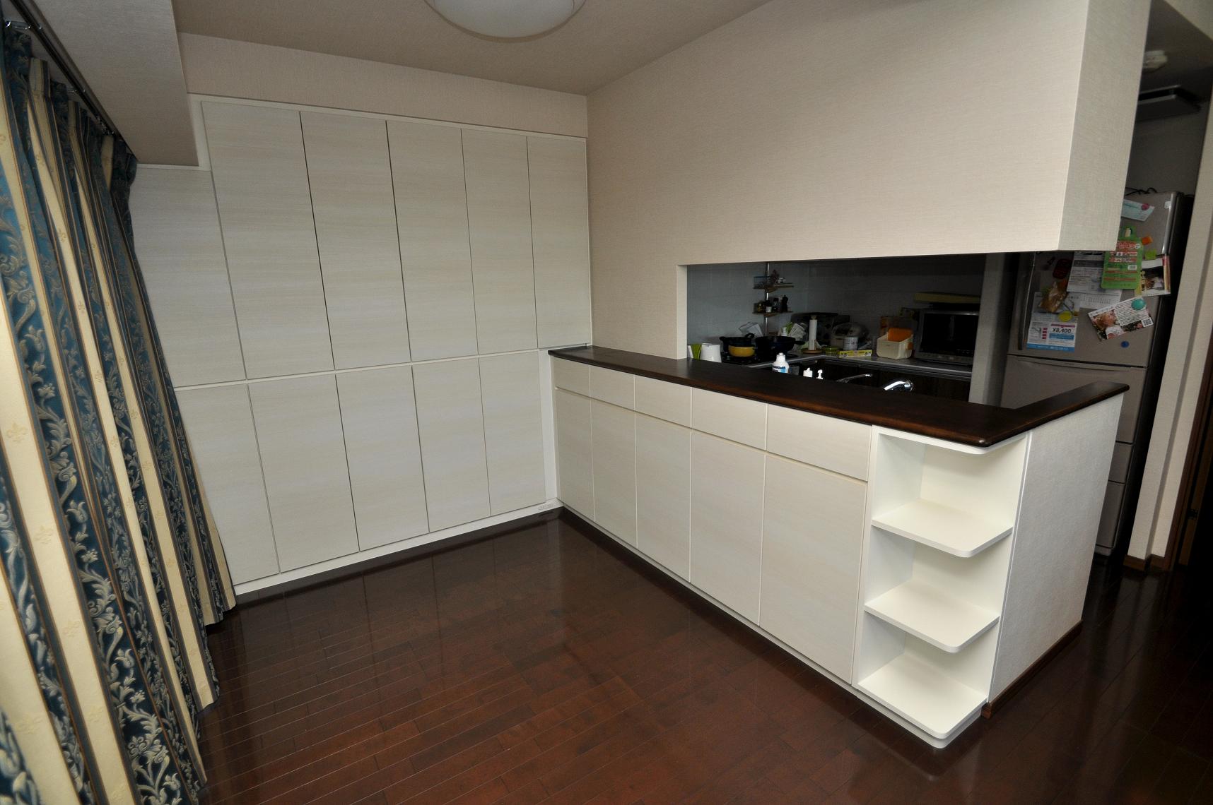 コメント:川口市にお住まいのM様よりダイニングボード・カウンター下(壁面収納)をオーダー頂きました。