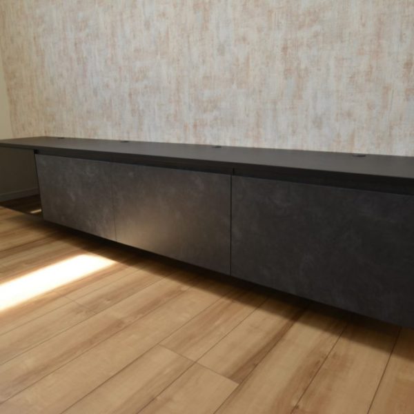 分譲住宅内リビングルーム内における造作壁面収納/テレビ台/TVボード製作 オーダー家具 製作事例