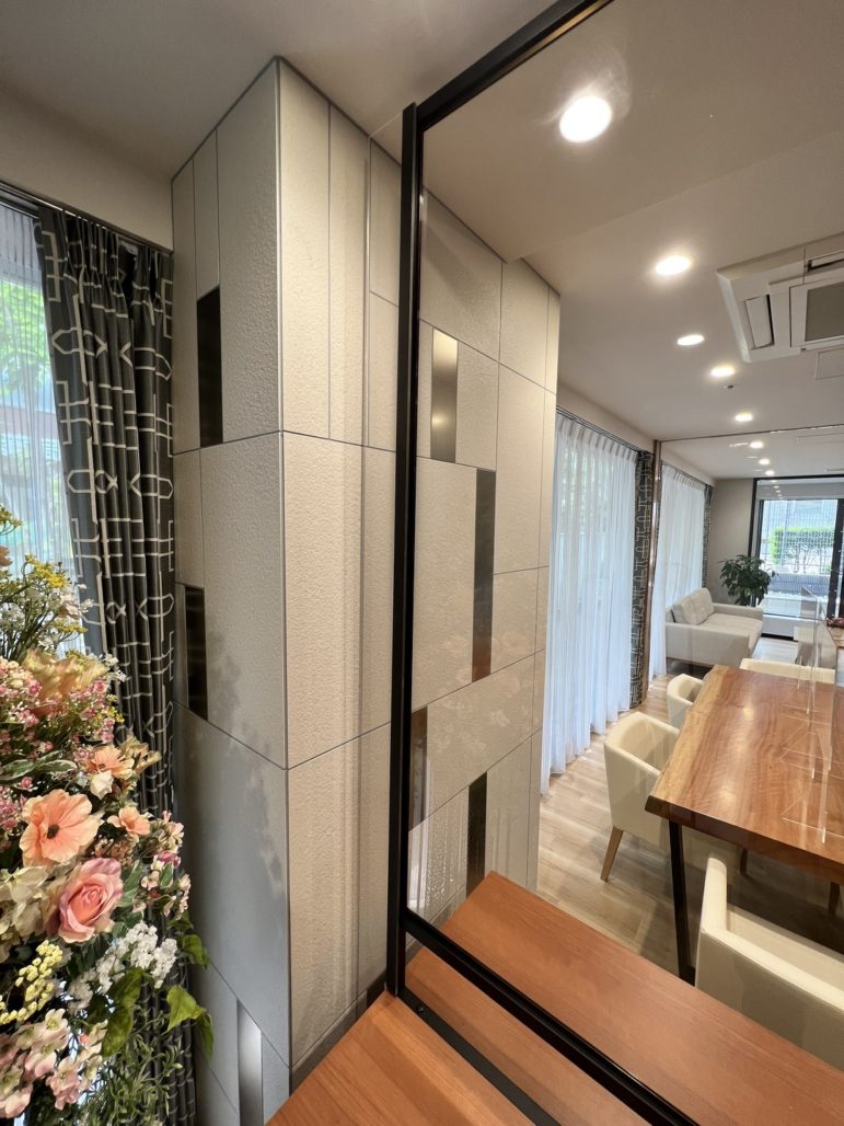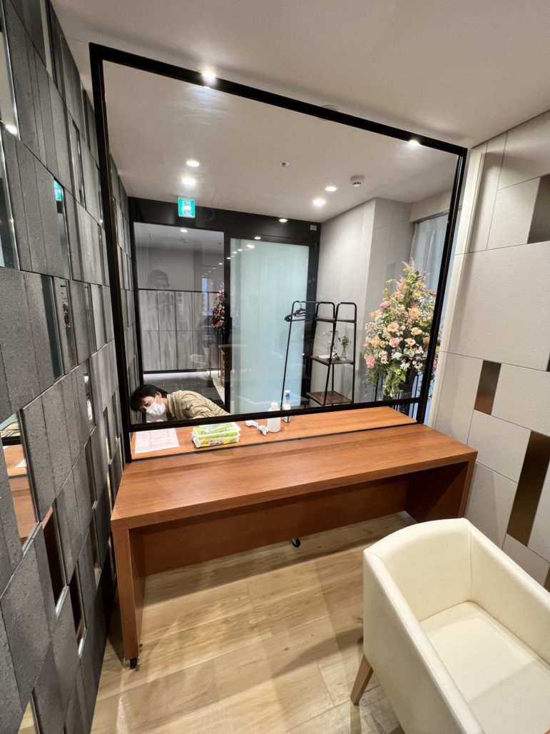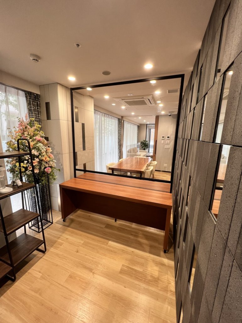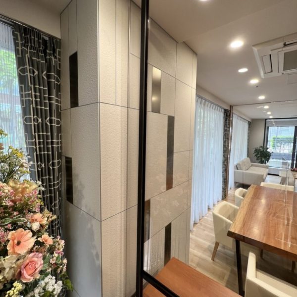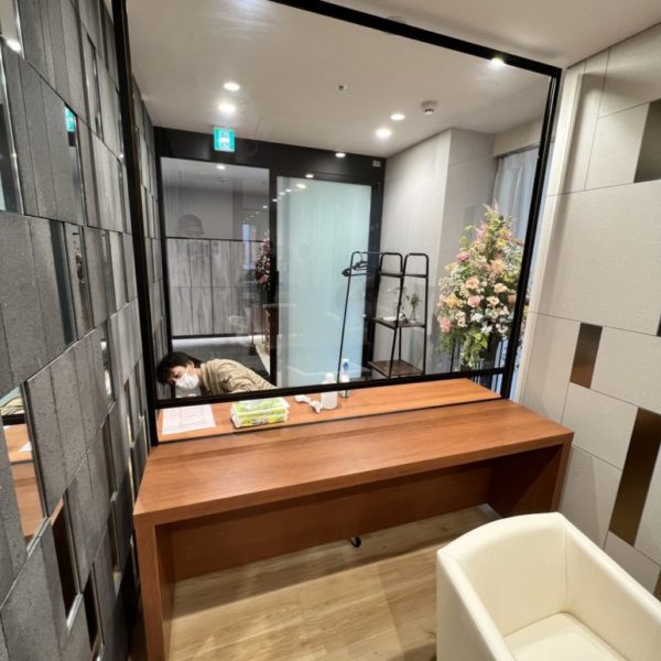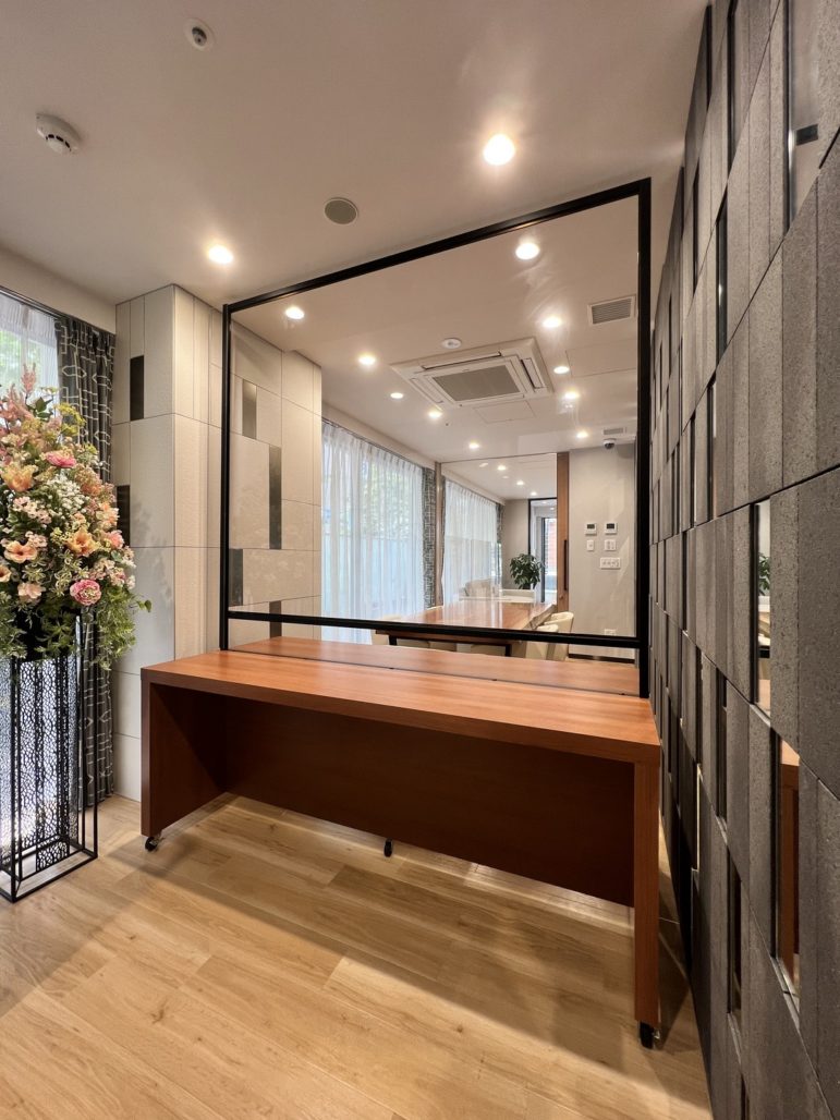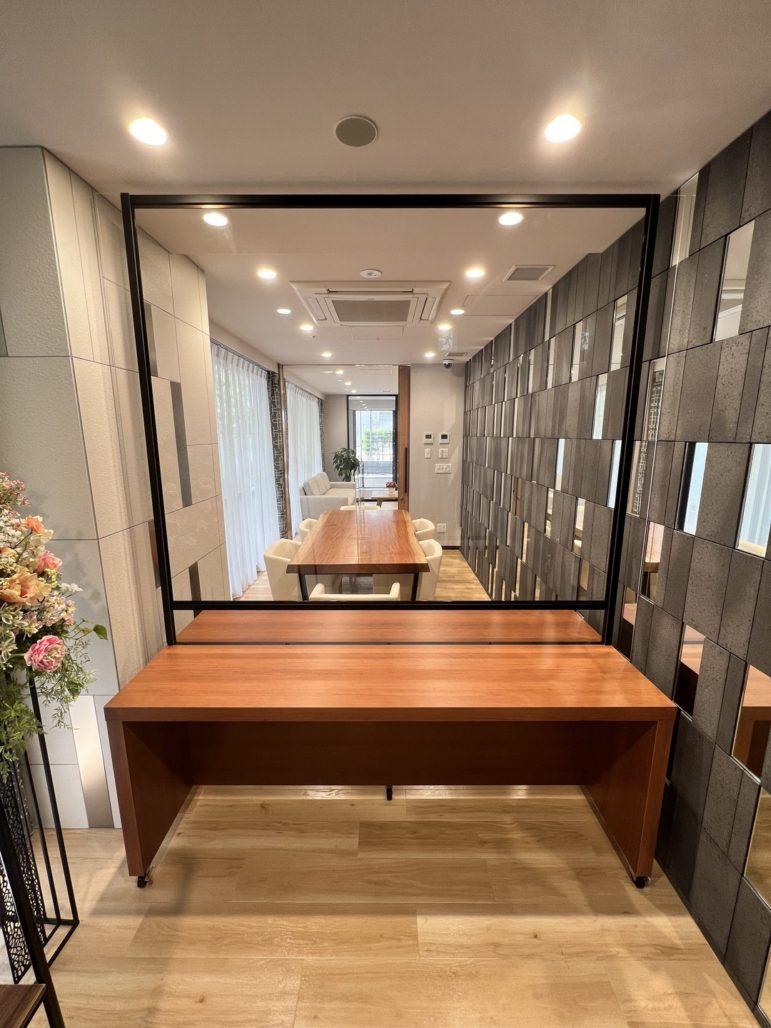 港区 医療介護施設什器工事 造作パーテーション 面会用カウンター オーダー家具